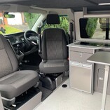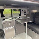 Our campervan is converted from the Highline model of Transporter van. It comes with air- con, bluetooth, cruise control, apple connectivity, front and reverse sensors, auto wipers, electric windows, windscreen climate technology, privacy glass, solar panel and diesel heaters to keep you warm in the winter. The engine is a 2.0 litre 110bhp diesel with Bluemotion technology and it has Euro 6 emission standard. On a full tank you will get up to 600 miles.